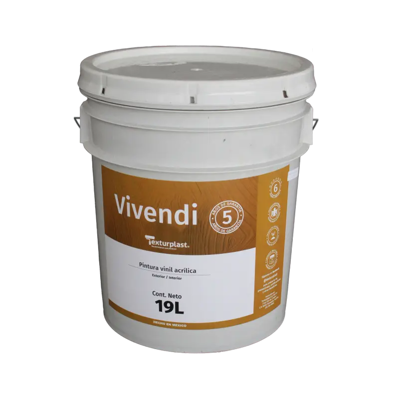Pintura vinil acrílica en acabado mate para interiores y exteriores.